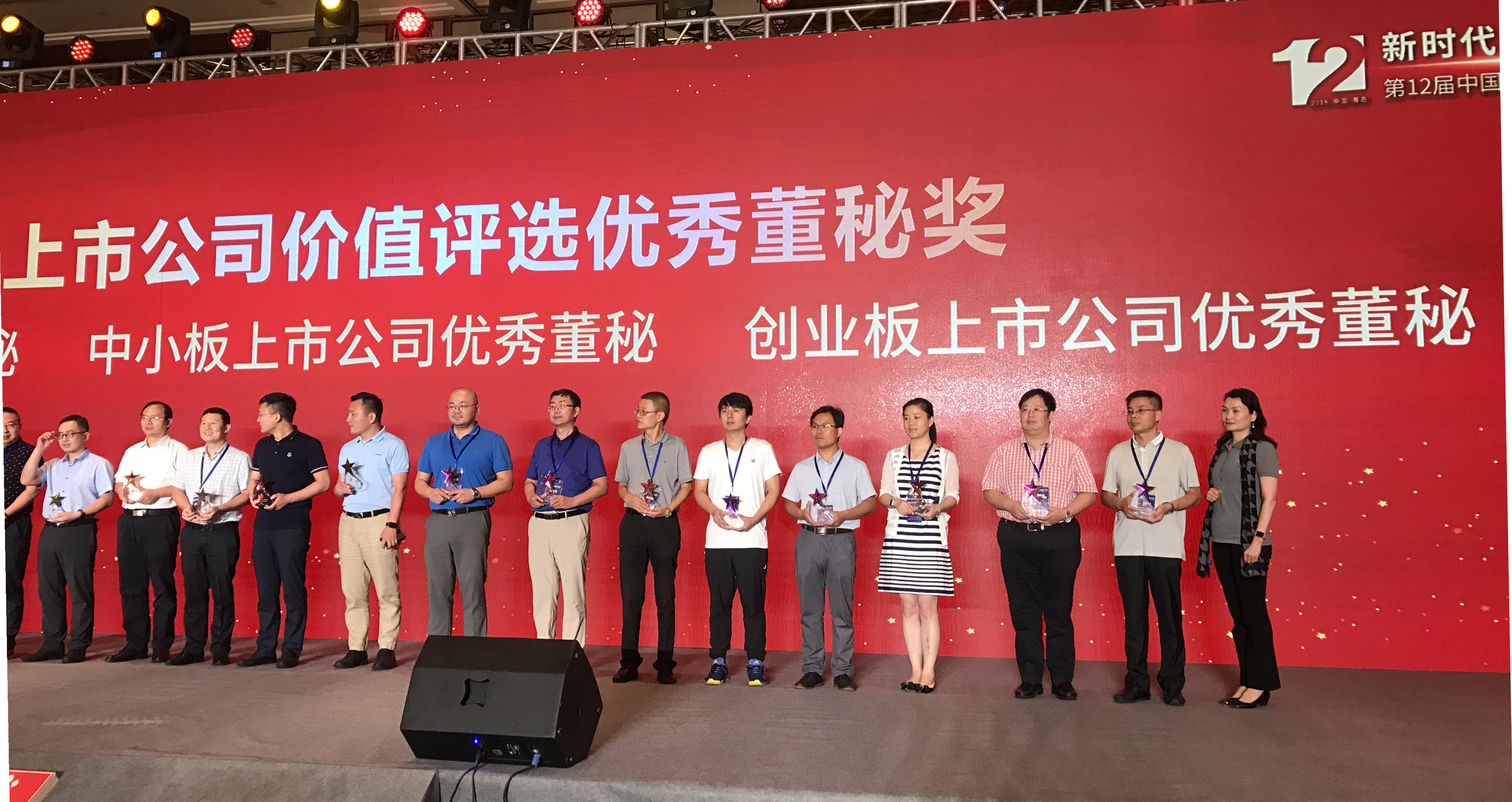 8 月 12 日,由證券時報社主辦,青島證監局、青島市金融辦、市南區人民政府協辦的“第 12 屆中國上市公司價值論壇”在青島成功舉行。來自監管層、上市公司、券商等機構共 500 余名人士參會。現場揭曉了“第十二屆中國上市公司價值評選”榜單,公司姚總分別榮獲“第十二屆中國創業板上市公司優秀董秘獎”、“第十二屆中國上市公司資本運作杰出董秘獎”。