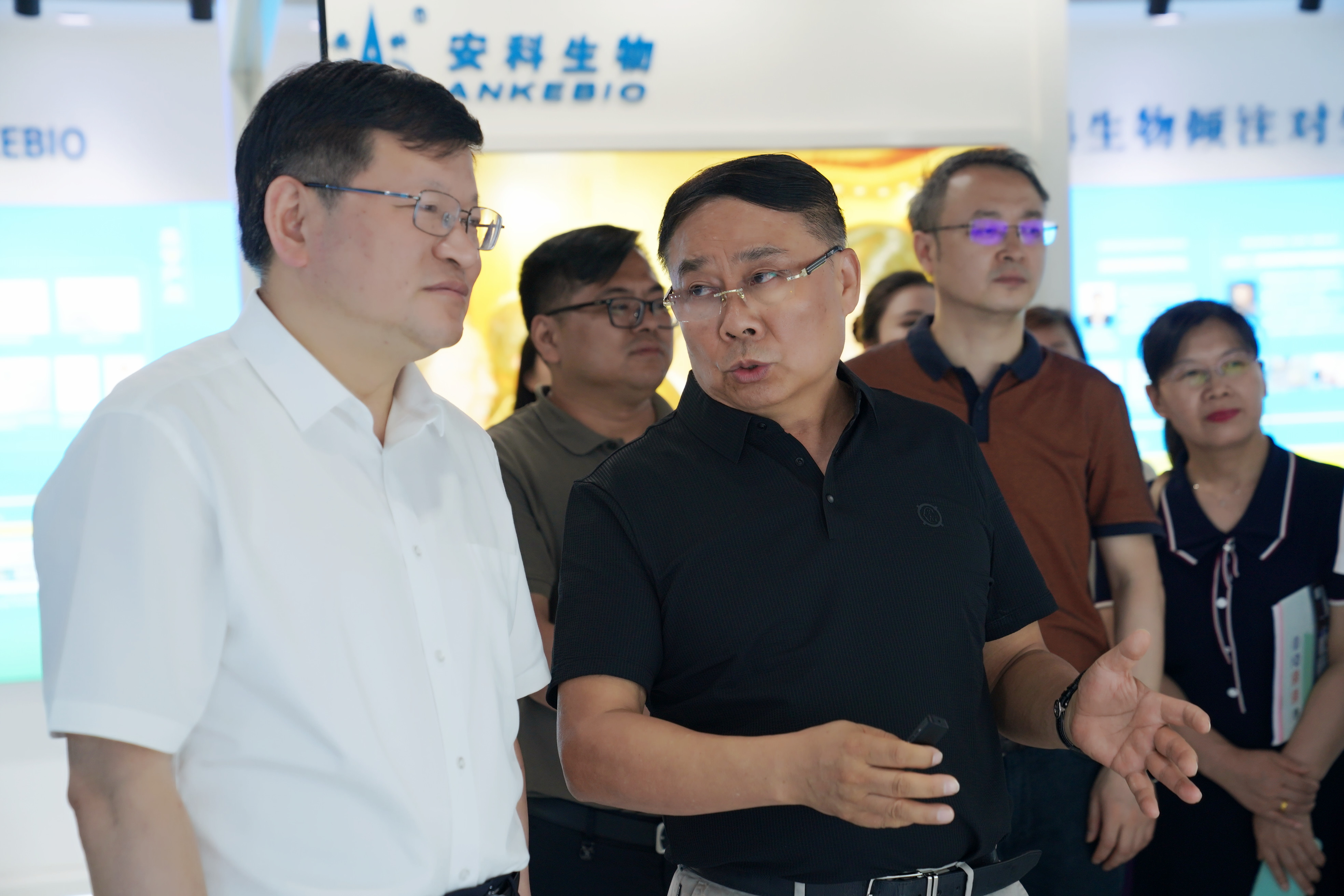 顧家山書記一行首先參觀了公司展廳。在展廳,宋禮華董事長向顧書記一行詳細(xì)介紹了集團(tuán)的發(fā)展歷程、組織架構(gòu)、業(yè)務(wù)領(lǐng)域和研發(fā)方向,成果轉(zhuǎn)化等方面內(nèi)容。宋禮華董事長系統(tǒng)詳實(shí)的介紹激起了顧家山書記濃厚的興趣,他不時(shí)插話詢問公司發(fā)展過程中科研體制改革、成果轉(zhuǎn)化、科研人員轉(zhuǎn)型辦企業(yè)等方面的具體細(xì)節(jié),對宋禮華董事長和安科生物在上述方面取得的成功做法與經(jīng)驗(yàn),給與了很高的評價(jià),并多次邀請宋禮華董事長在百忙中抽出時(shí)間,前往安徽醫(yī)科大學(xué)進(jìn)行人生閱歷和創(chuàng)業(yè)經(jīng)驗(yàn)分享。他反復(fù)說到,宋禮華董事長的創(chuàng)業(yè)故事,是安醫(yī)大莘莘學(xué)子最應(yīng)該去讀懂的一本書。