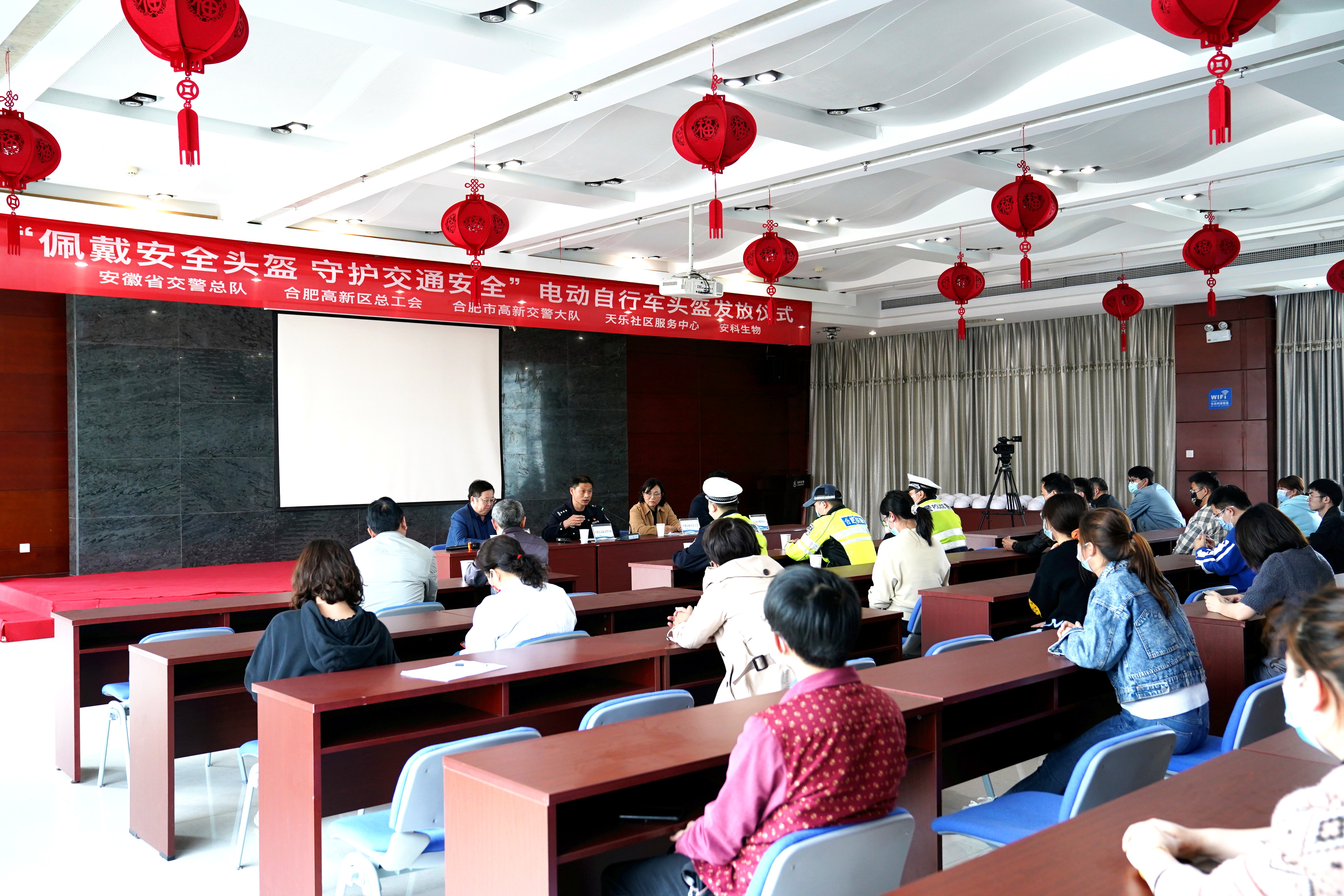 為進一步提升電動自行車騎乘員工的安全防護意識,切實關心員工通勤安全,預防交通安全事故的發生,4 月 18 日,由安科生物黨委、公司工會與合肥市高新區總工會、合肥市高新交警大隊、合肥高新區天樂社區服務中心聯合開展的“佩戴安全頭盔,守護交通安全”電動自行車騎行安全宣傳教育活動,在公司 A 座 12 樓會議室舉行,高新區交警大隊警官為參會員工宣講交通安全知識,現場還為以電動自行車為主要通勤方式的員工發放了 150 只 3C 認證的安全頭盔。