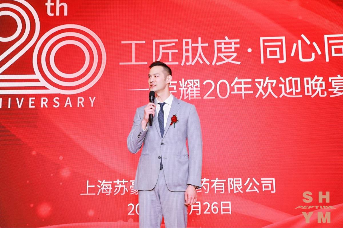 2021 年 11 月 26 日,對(duì)蘇豪逸明人來(lái)說(shuō)是個(gè)值得慶賀的日子。以工匠“肽”度 同心同行為主題的上海蘇豪逸明公司成立 20 周年慶祝大會(huì),在上海虹橋康得思酒店成功舉辦。因上海突發(fā)疫情影響,宋禮華董事長(zhǎng)等集團(tuán)領(lǐng)導(dǎo)未能如愿參加此次活動(dòng),由安科生物集團(tuán)高級(jí)副總裁盛海代表集團(tuán)出席了活動(dòng)。活動(dòng)當(dāng)天,蘇豪逸明創(chuàng)始人、總經(jīng)理周逸明、執(zhí)行董事周大為等領(lǐng)導(dǎo)及蘇豪逸明全體員工共同參會(huì)。