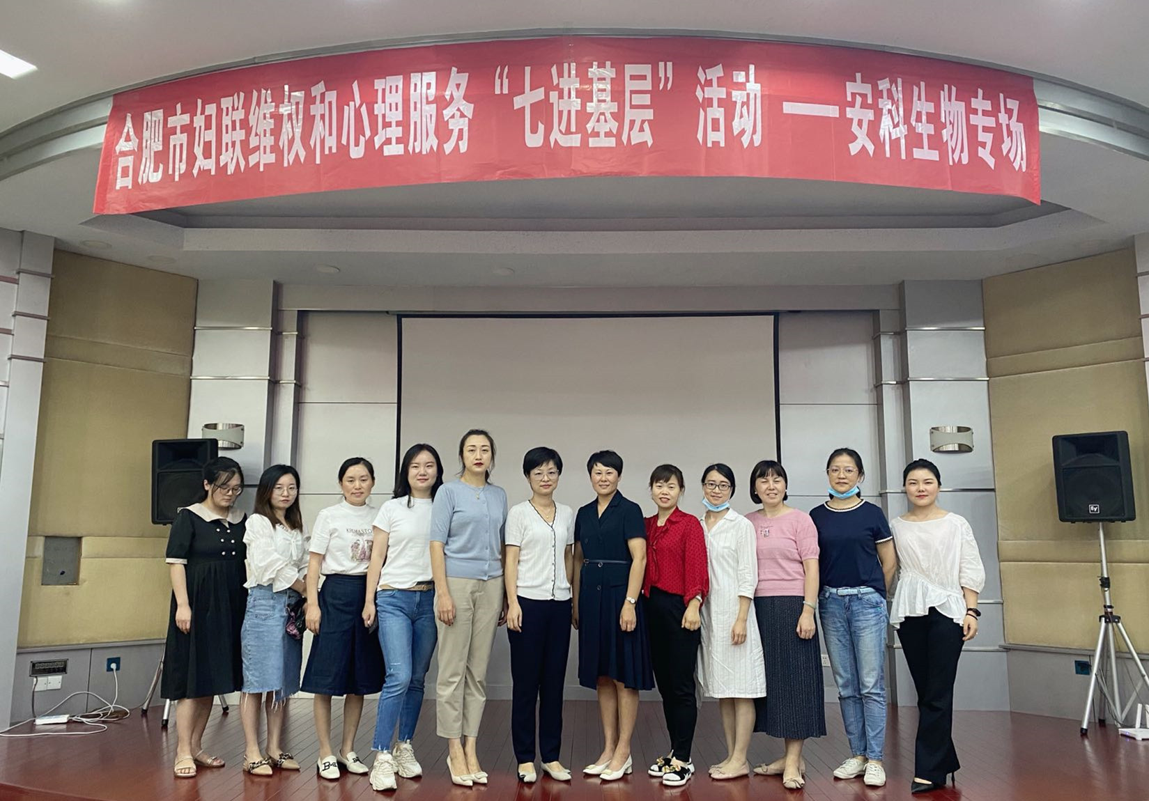 為喜迎祖國第 72 個生日,應合肥市婦聯組織開展“維權和心理服務‘七進基層’活動”的號召,將孕產婦心理健康、法制教育、兒童安全、特定人群心理干預等七類服務送到婦女群眾和廣大家庭身邊,9 月 30 日下午,安科生物婦聯特舉辦了主題為《女性權益保護:從意識到行動》的專場講座。