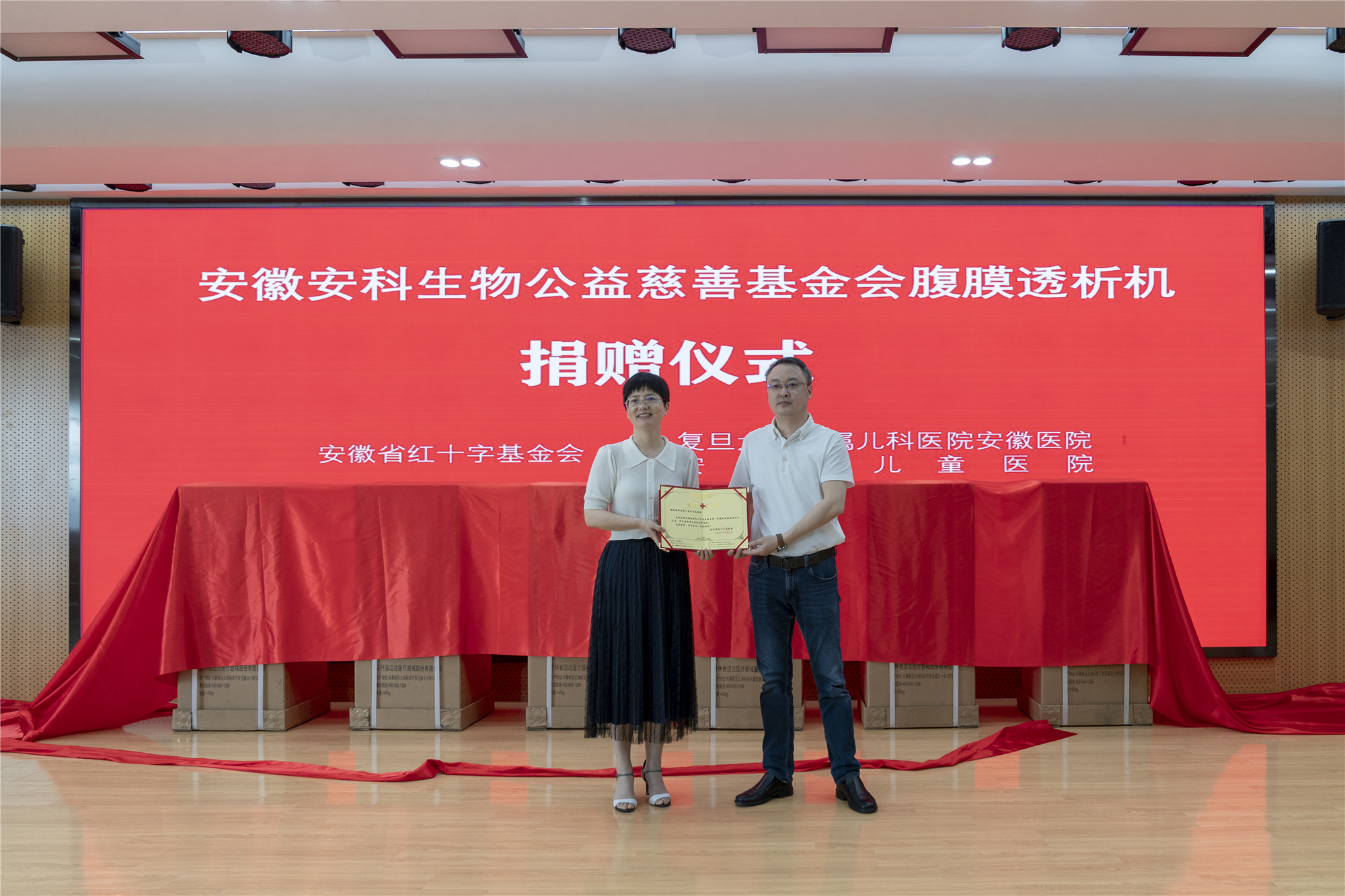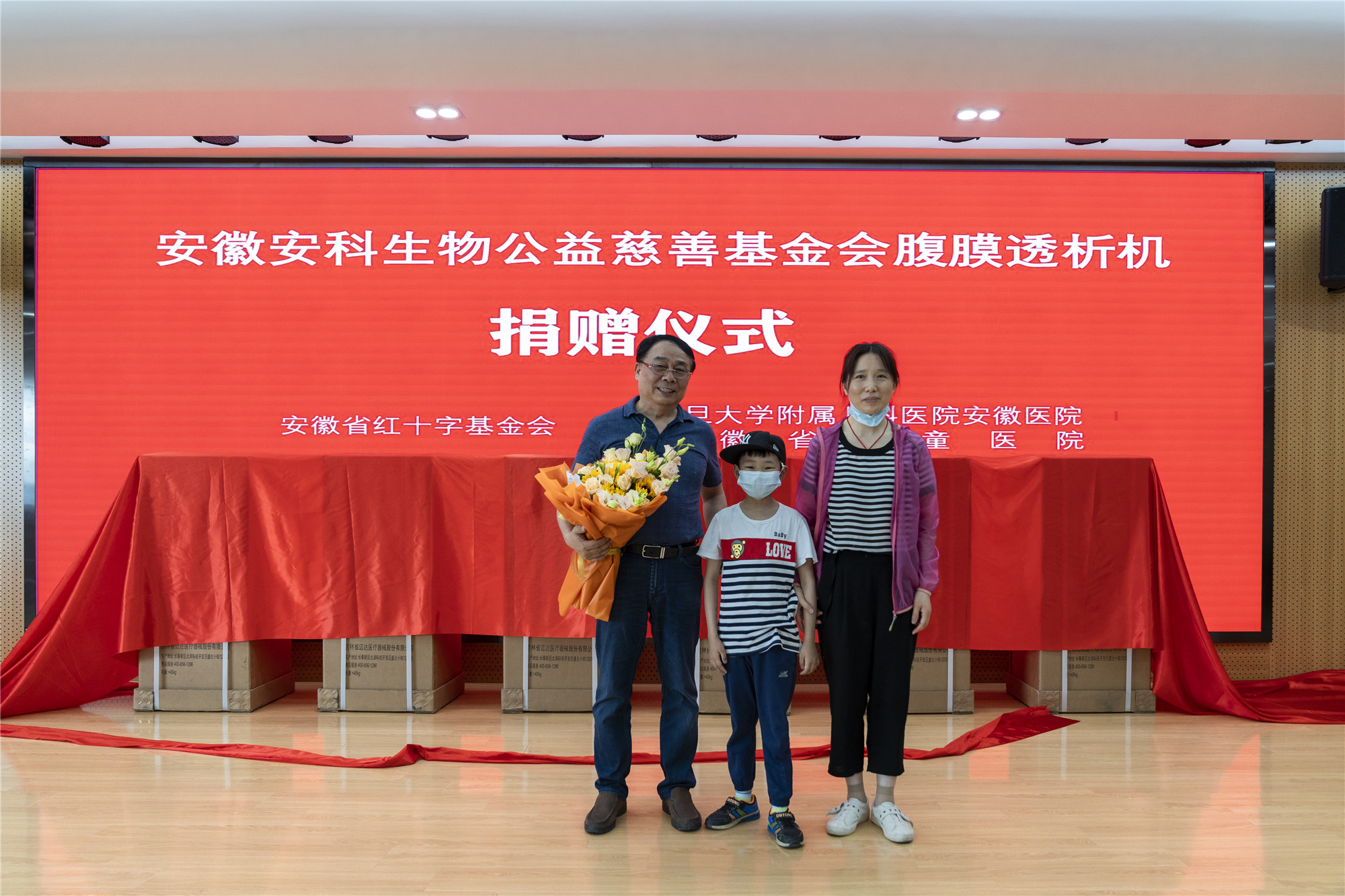 2021 年 6 月 4 日上午,安徽安科生物公益慈善基金會腹膜透析機捐贈儀式在安徽省兒童醫(yī)院成功舉行。安徽安科生物公益慈善基金會通過安徽省紅十字基金會向安徽省兒童醫(yī)院捐贈自動腹膜透析機 10 臺,用于尿毒癥患兒治療。