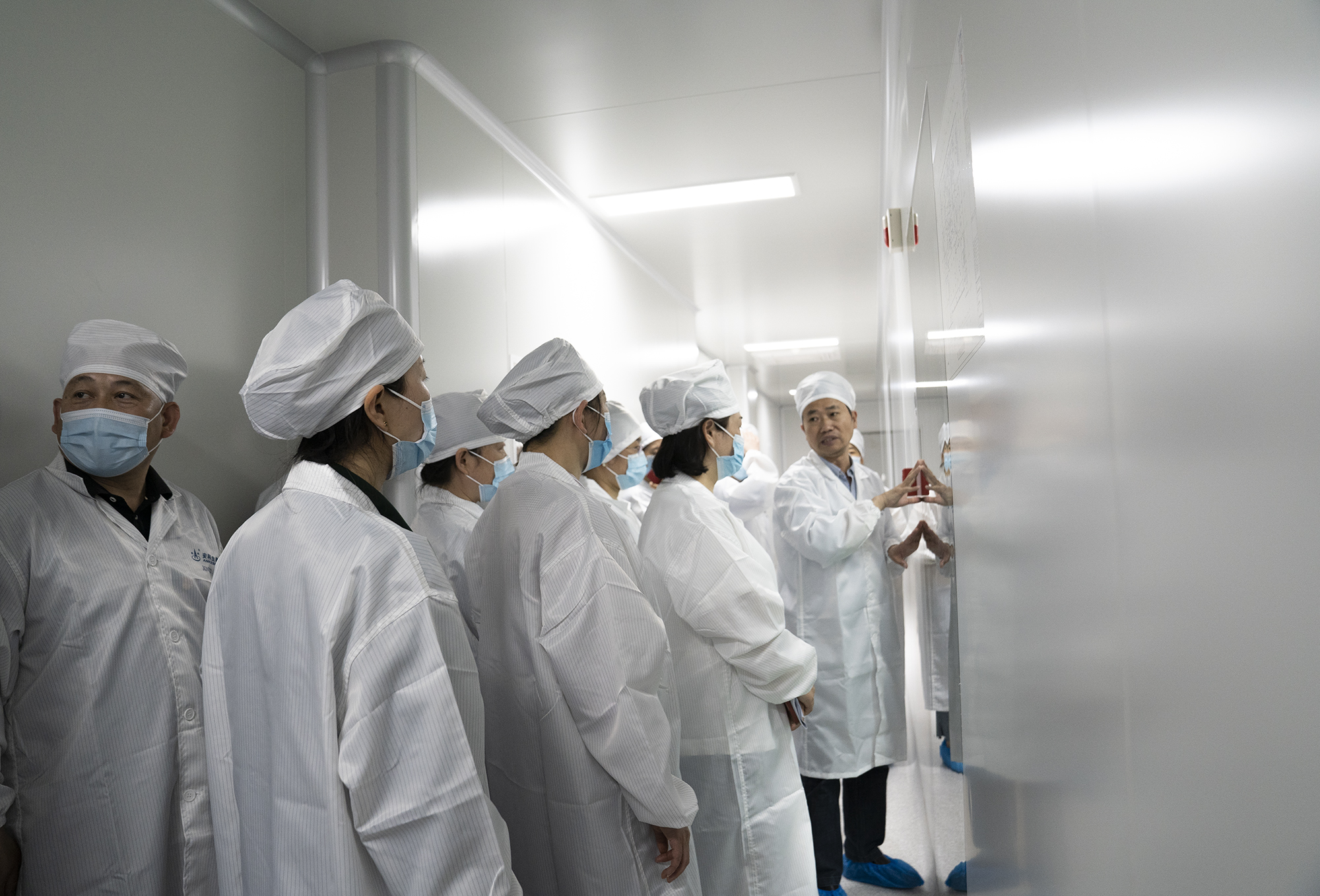 參加活動的 30 多名醫(yī)保系統(tǒng)黨員,在公司生產(chǎn)總監(jiān)魏躍武帶領(lǐng)下,首先參觀了公司北區(qū)四樓生長激素生產(chǎn)車間,對生物醫(yī)藥的生產(chǎn)工藝和流程有了系統(tǒng)的了解。