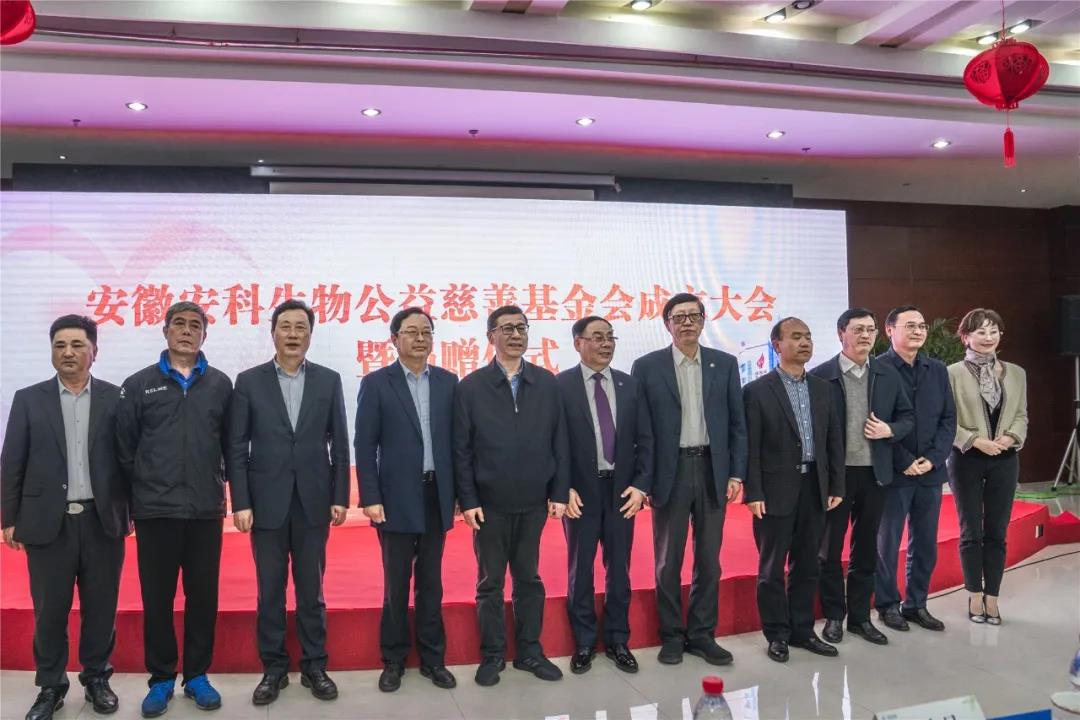 2021 年 4 月 16 日下午,“安徽安科生物公益慈善基金會成立大會暨捐贈儀式”在安科生物 A 座 12 樓會議室成功舉行。會議當天,安徽省民政廳社會組織管理局、合肥高新區有關領導、中華少年兒童慈善救助基金會、部分受資助單位負責人出席儀式并與安科生物公司董事長宋禮華一同為“安徽安科生物公益慈善基金會”揭牌。