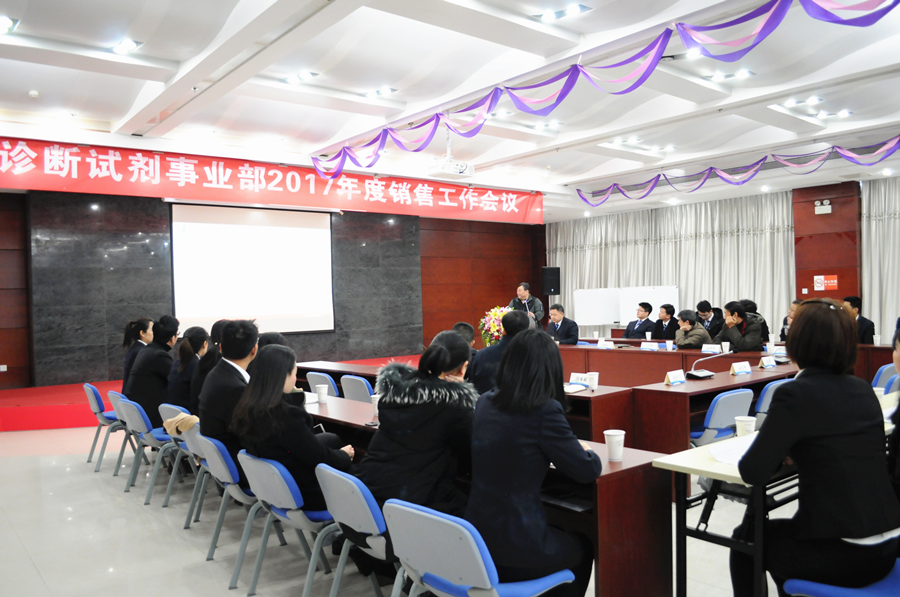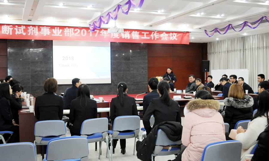 會議開始后,診斷試劑事業部總經理徐振山先生就 2017 年部門在銷售、生產、研發等方面的工作做了詳細匯報。2017 年,是診斷試劑事業部集體發力的一年,無論是研發創新、市場銷售、生產服務、團隊管理等各方面成績都趨于向好。