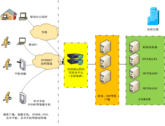 隨著安科生物集團的不斷發(fā)展壯大,目前旗下子公司已分布在上海、無錫、安慶、銅陵等多個城市,辦事處更是遍布全國各地。這意味著總部與辦事處、子公司之間的實時聯(lián)系、數據共享、異地協(xié)同、移動辦公的需求更加突出。