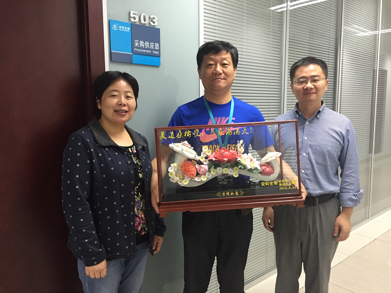 為表示對朱師傅多年來的辛苦付出和對他采購工作的肯定與感謝,安科生物公司總經理助理兼采購中心經理江軍培先生特別安排了一場送別宴,邀請本部門以及經常協作部門的同事一同參加,陪朱師傅追憶往昔崢嶸歲月,暢想未來美好生活,既增進了同事間的感情,又緩解了朱師傅對公司依依不舍的焦慮感。