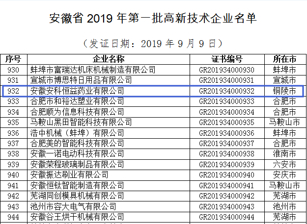 安科恒益藥業順利通過2019年首批高新技術企業認定