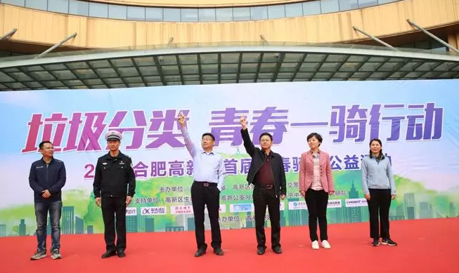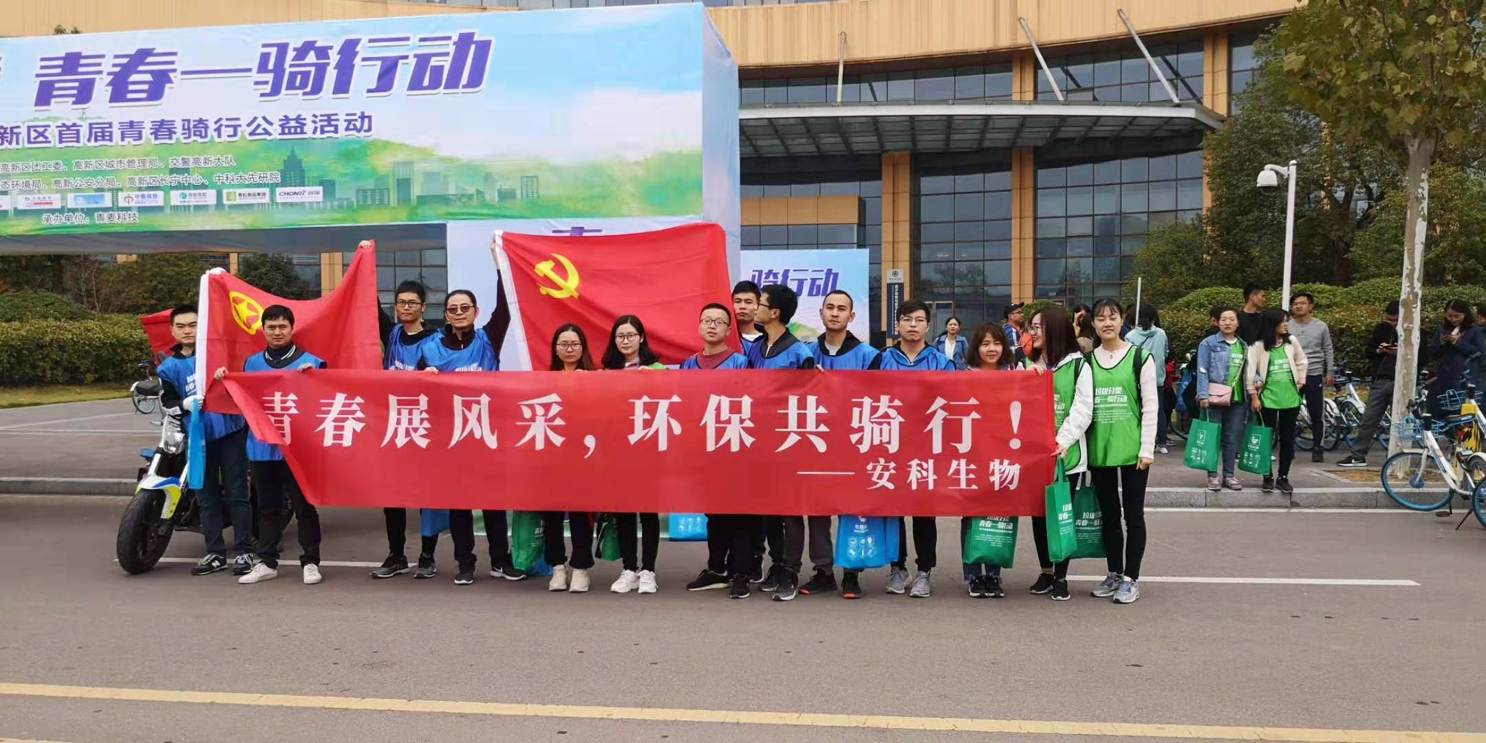 10 月 27 日,安科生物團總支組織公司部分團員青年參加了“垃圾分類、青春一騎行動”2019 合肥高新區首屆青春騎行公益活動。
