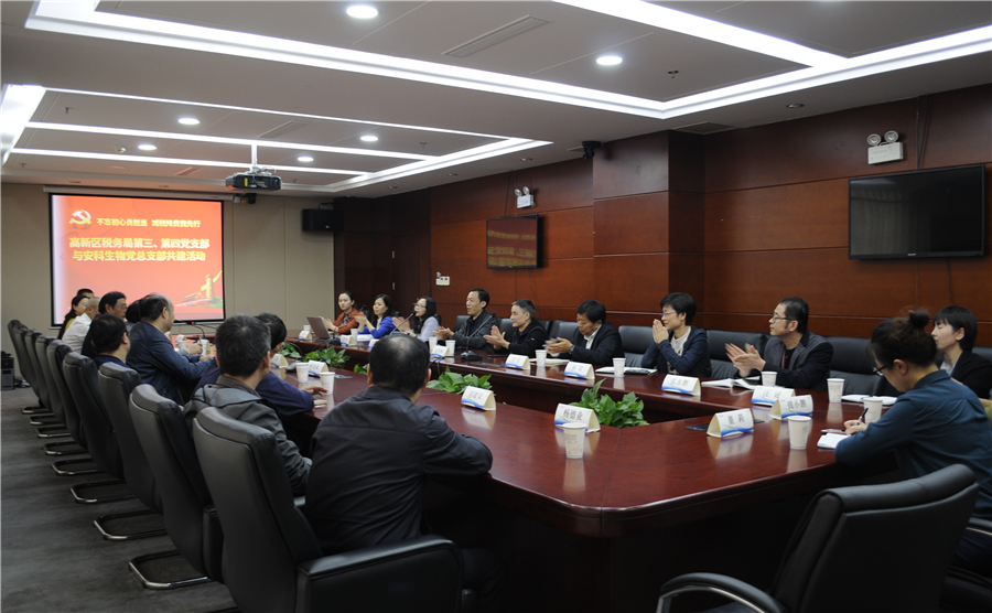 參加本次共建活動的稅務局領導有合肥高新區稅務局黨委委員、副局長張克誠、方嘉俊、第三支部書記、納稅服務科長何光武、第四支部書記、人事教育科科長周品誠以及稅政科、風險管理科、稅源一科、稅源三科等部門的黨員同志。安科生物黨總支領導、部分黨員代表及財務部門負責同志參加共建活動。