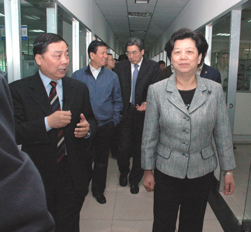 二○○六年四月七日,國務委員陳至立在安徽省委書記郭金龍,省長王金山及省委常委、合肥市委書記孫金龍等陪同下來安科公司考察調研企業自主創新情況。