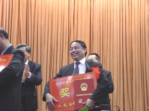 省委書記郭金龍、省長王金山出席當天的科技獎勵大會,王金山省長為宋禮華董事長授獎,省委副書記張平做重要講話,張平在講話中代表省委、省政府向獲獎人員表示熱烈祝賀。他說,實施科技獎勵是省委、省政府為落實科教興皖和人才強省戰(zhàn)略,推動科技進步和創(chuàng)新,促進經(jīng)濟社會全面協(xié)調(diào)發(fā)展而采取的一項重大舉措。他指出,當前和今后一段時期,全省各地要緊緊圍繞“861”行動計劃,把科技資源集中到事關加快我省現(xiàn)代化建設全局的關鍵領域,集中到事關實現(xiàn)全面協(xié)調(diào)可持續(xù)發(fā)展的重點領域,集中到事關科技事業(yè)自身持續(xù)發(fā)展的重要領域,加快區(qū)域創(chuàng)新體系建設,全面提升我省的科技創(chuàng)新能力。張平最后強調(diào),安徽要奮力崛起,需要一批在關鍵領域和重點崗位的科技領軍人物,需要一支規(guī)模宏大、熱愛安徽、奉獻安徽的科技人才隊伍。各地各部門要把發(fā)現(xiàn)、培養(yǎng)、使用和凝聚優(yōu)秀科技人才作為科技發(fā)展的一項重要任務,不斷創(chuàng)新體制機制,創(chuàng)造良好環(huán)境,形成人盡其才、才盡其用、充滿活力的生動格局,加快造就一支我省經(jīng)濟建設和社會發(fā)展的科技先鋒隊。