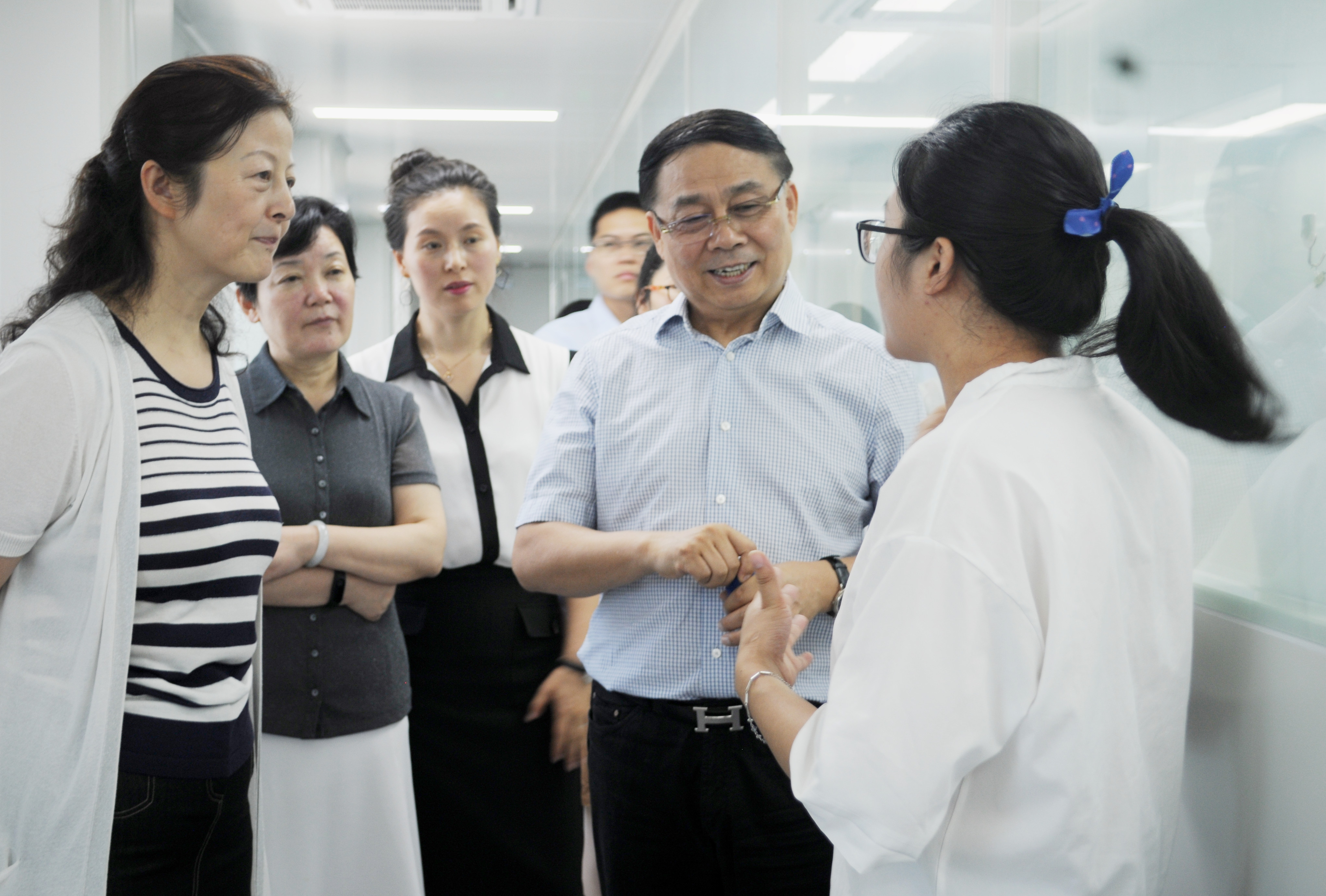 吳麗華副局長一行先后來到公司展廳、單克隆抗體車間、CART 車間一一進行參觀,所到之處,來訪嘉賓一行人員認真了解情況,并詳細聽取陪同人員的介紹。吳麗華副局長對企業近些年來取得的成績,還有在 HER2 單克隆抗體藥物、溶瘤病毒、CART 細胞免疫治療等抗癌藥的研發、創新給予了充分的肯定。