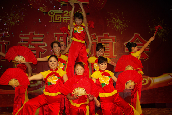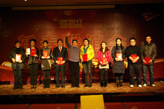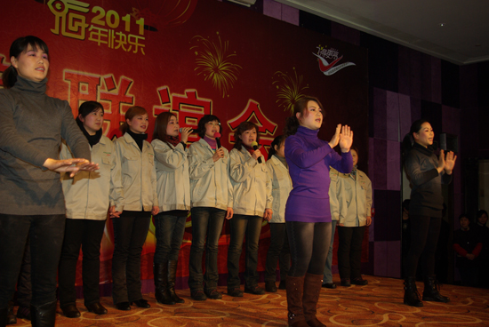 晚宴結束后,集團公司對2010年度的先進集體及優秀個人進行了表彰。在隨后進行的文藝匯演中,所有演員充分展示自己的才藝,文藝節目精彩紛呈。晚會節目類型涵蓋了歌舞、小品、詩朗誦、樂器演奏等多種形式,整臺晚會氣氛熱烈、高潮迭起,掌聲和笑聲拉近了彼此的距離,“飛得更高”凝聚了全體員工的共同心愿。