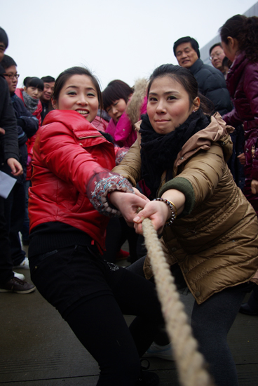 聯誼活動共分為體育比賽、聯歡晚宴、年度優秀表彰和文藝節目匯演等四大版塊。當天下午舉行的體育比賽除了乒乓球、桌球、羽毛球、拔河、跳大繩等競技類項目外,還包括了大腳板、小馬過河、摸石過河、螃蟹背西瓜、自行車慢騎、踢毽子等娛樂性比賽。運動員努力拼搏、觀眾齊聲吶喊,比賽現場匯成了一片歡樂的海洋。