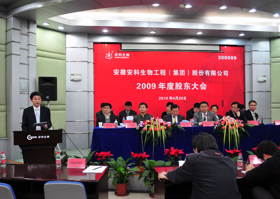 2010年4月28日下午兩點,安科生物召開2009年度股東大會,審議表決2009年報等有關事項。
