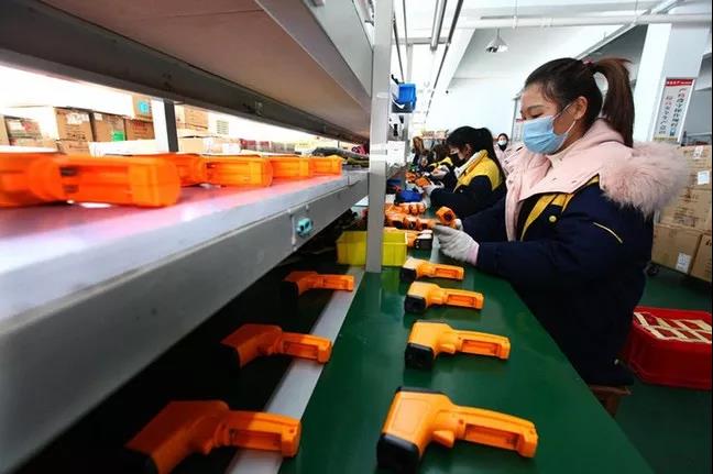 與疫情賽跑的不僅有來邦科技。作為一家生產儀器儀表和紅外測溫設備的企業,在突如其來的疫情面前,馬鞍山川宇電子有限公司提前結束休假,迅速復工復產。目前廠里紅外測溫槍生產線已開足馬力,日產量在一千臺左右,后續隨著產能不斷釋放,產量還會不斷增加。
