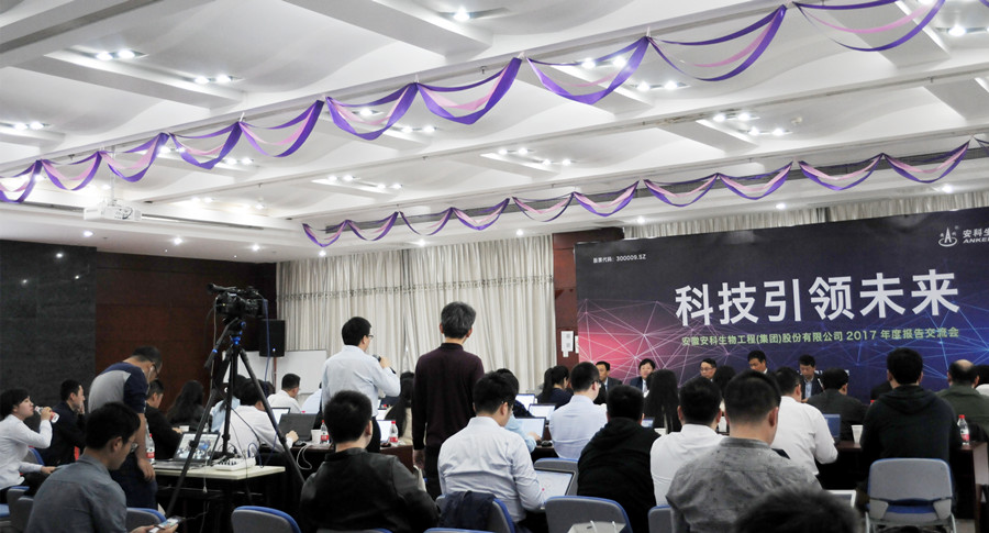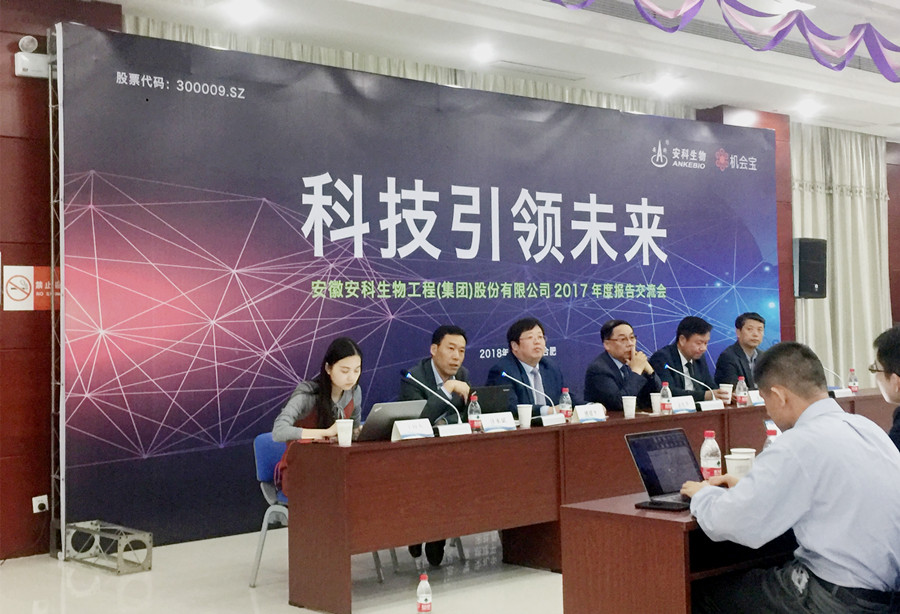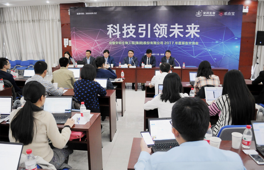 4 月 11 日下午,安科生物通過機會寶召開 2017 年度報告交流會,參會高管有:安科生物董事長宋禮華、副總經理、董秘姚建平、副總經理宋社吾、盛海、財務總監汪永斌、博生吉安科董事長、總經理楊林。