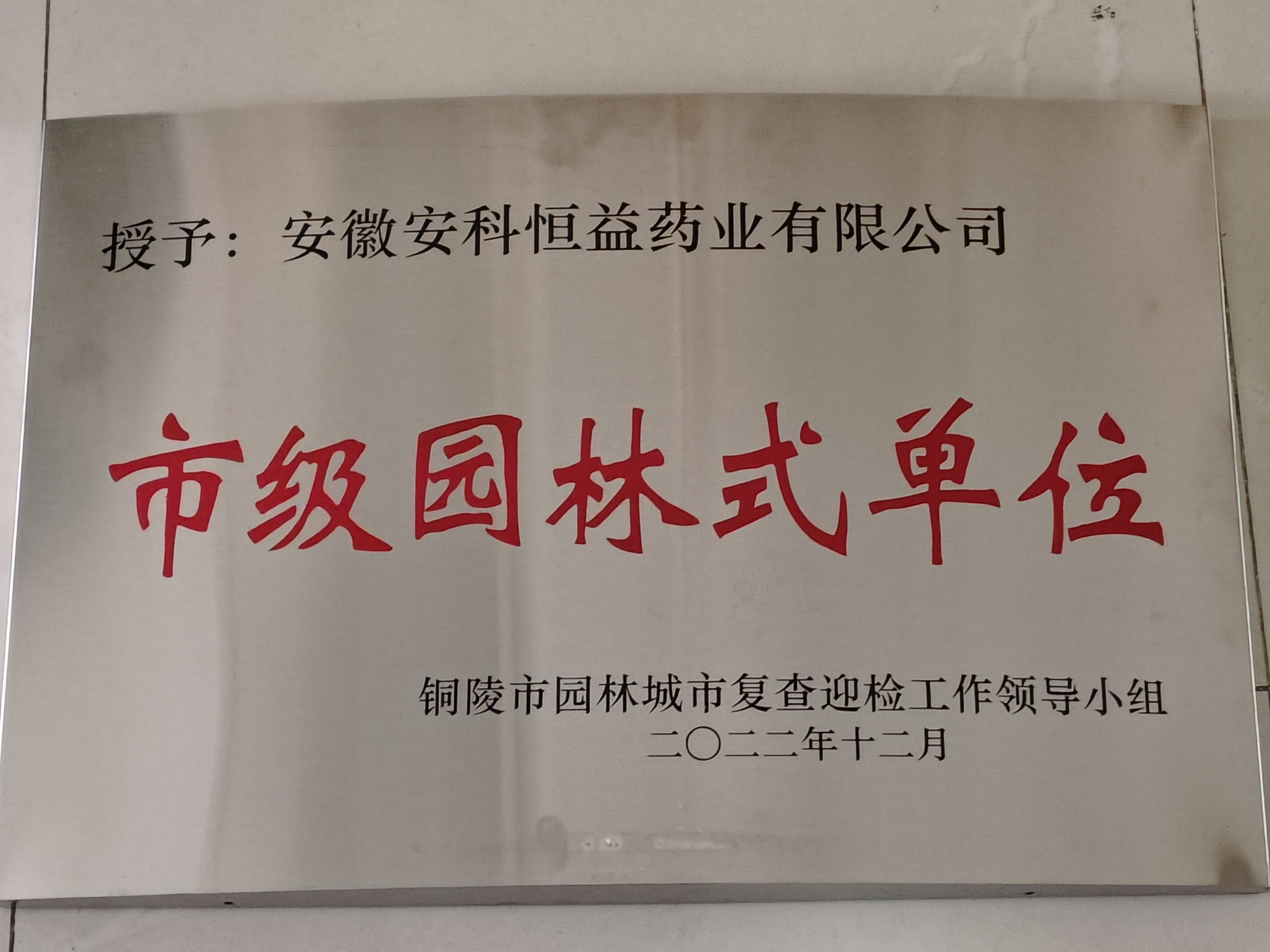 做綠色工廠的踐行者 安科恒益獲評(píng)銅陵市園林式單位榮譽(yù)稱號(hào)