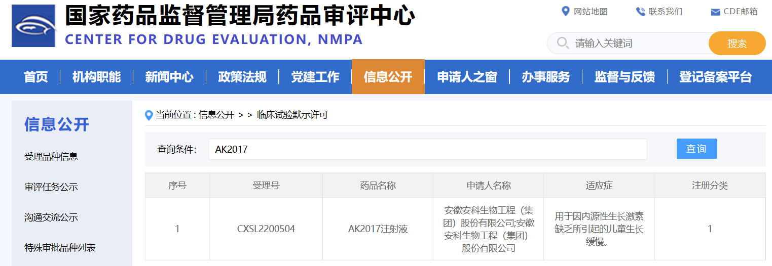 近日,安科生物的 AK2017 注射液(重組人生長激素-Fc 融合蛋白注射液)臨床試驗申請獲得國家藥品監(jiān)督管理局(NMPA)批準,同意本品開展用于因內(nèi)源性生長激素缺乏所引起的兒童生長緩慢的臨床試驗。