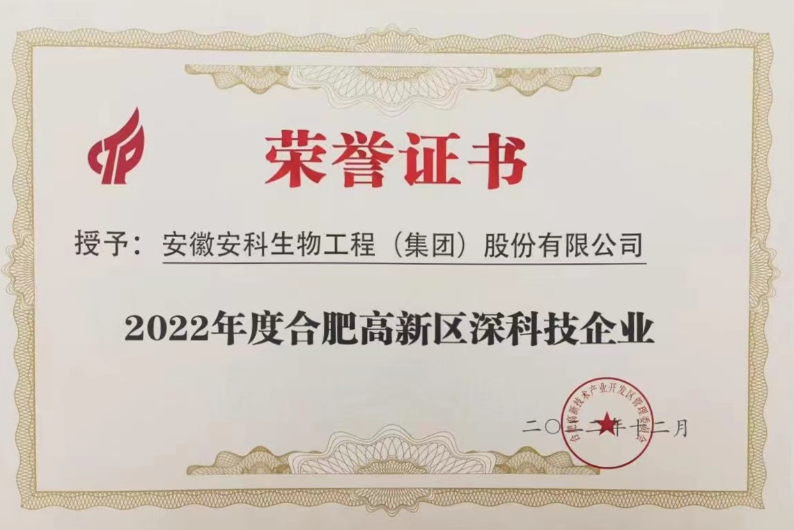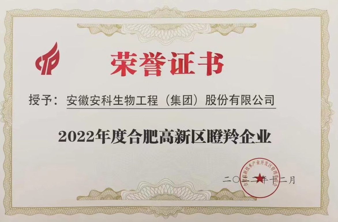 2022年12月28日,2022年科大硅谷創(chuàng)新創(chuàng)業(yè)思想峰會暨合創(chuàng)匯年度盛典在合肥高新區(qū)隆重舉行。會上,發(fā)布了《合肥高新區(qū)2022年度高成長企業(yè)報告及“雙五”“雙十”企業(yè)工作方案》,并對瞪羚企業(yè)、雛鷹企業(yè)等32家最具有發(fā)展?jié)摿托袠I(yè)代表性的高成長企業(yè)進(jìn)行表彰,旨在激發(fā)鼓勵高成長企業(yè)在新興產(chǎn)業(yè)發(fā)展與區(qū)域創(chuàng)新中的引領(lǐng)作用,安科生物榮登合肥高新區(qū)高成長企業(yè)榜單,榮獲2022年度合肥市高新區(qū)“瞪羚企業(yè)”、“深科技企業(yè)”稱號。