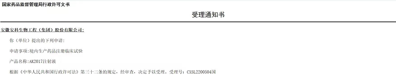 2022 年 10 月 10 日,安科生物的 AK2017 注射液(重組人生長激素-Fc 融合蛋白注射液)臨床試驗申請獲得國家藥品監(jiān)督管理局(NMPA)受理。此次獲受理的 AK2017 注射液屬 1 類創(chuàng)新藥,是一款長效化生長激素類生物制品。