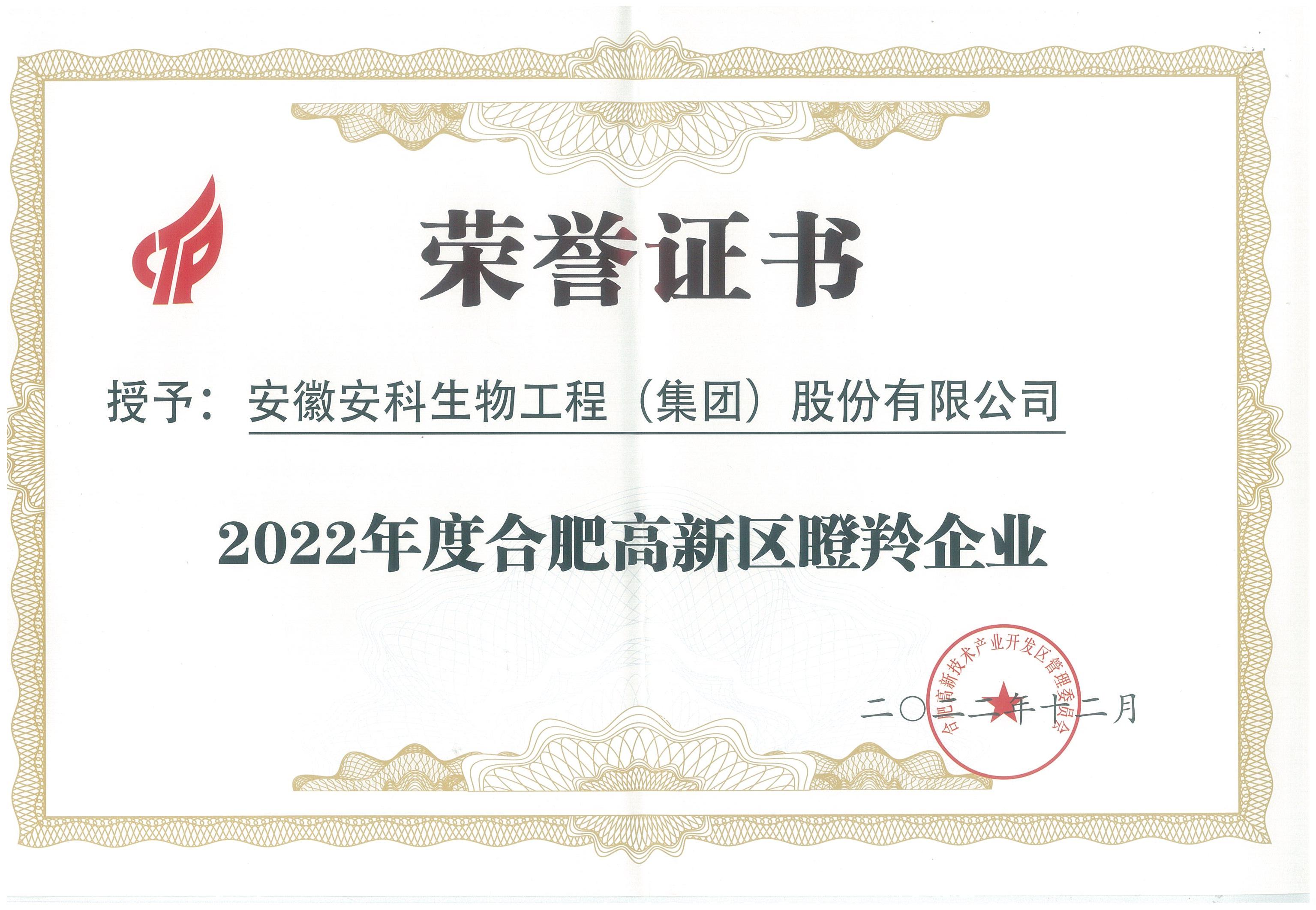 近日,“新質生產力 時代新動能”2023年合創匯年度盛典在合肥高新區中安創谷舉行,會上重磅發布了《2023年度高成長企業報告》,安科生物榮獲2023年度合肥高新區瞪羚企業稱號。這項榮譽不僅是對安科生物高質量發展的高度認可,也是對其近年來取得的創新成果與社會經濟效益的充分肯定。