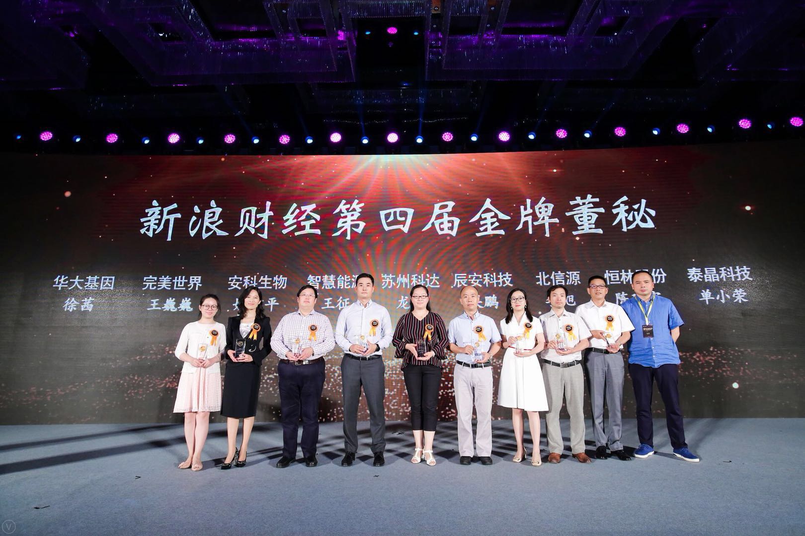 2018年榮獲新浪財經第四屆金牌董秘(左三為姚建平)