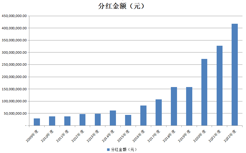 安科生物一個重要的發(fā)展理念是行穩(wěn)致遠(yuǎn),在穩(wěn)步持續(xù)高增長的同時,安科生物一直非常注重股東回報,上市十余年以來,一直堅持分紅以回饋投資者。2009年安科生物通過IPO向社會融資約3.2億元,2019年再融資6.6億元,2009-2022年度,公司連續(xù)14年分紅,累計現(xiàn)金分紅逾18.28億元人民幣,是IPO及再融資實(shí)際募集資金的1.86倍。