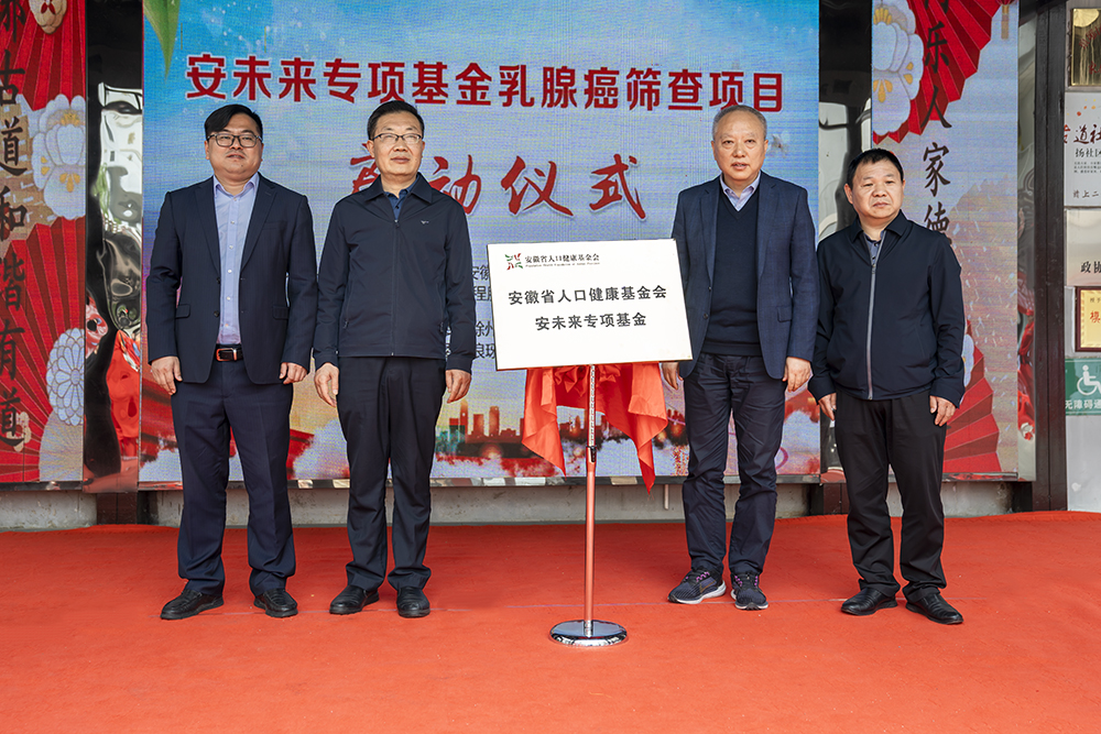 揭牌領導:省計生協秘書長張高秋、省人口健康基金會理事長杜昌勇、安科生物腫瘤事業部總經理李慶良、滁州市衛健委副主任汪洋