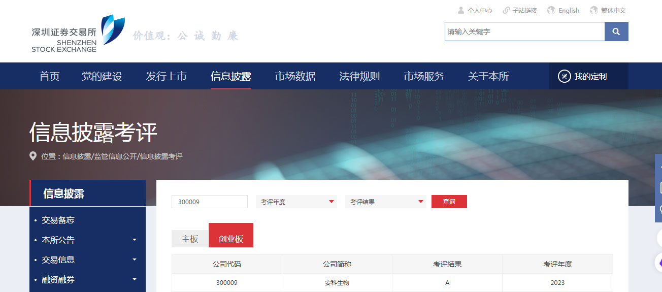 最新公布的2023-2024年度創業板上市公司信息披露工作評價結果顯示,安科生物(股票代碼:SZ300009)在眾多競爭者中脫穎而出,再次榮獲A級評價。這一榮譽不僅是監管機構對公司在信息披露方面嚴謹態度和卓越表現的高度認可,也是對公司規范運作水平、投資者關系管理及股東回報等工作的充分肯定。