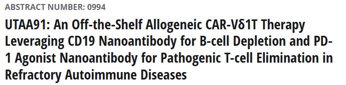 UTAA91治療自身免疫性疾病研究摘要已在ACR官網發布(鏈接:https://acrabstracts.org/)