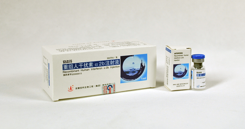 Anterferon is the first Recombinant Human Interferon ɑ2b for injection licensed by CFDA. This product exerts actions of anti-viral, inhibiting proliferation of tumor cell and regulating immunity. The latter includes enhancing the activities of macrophages, T cells and NK cells. Having undergone clinical trials, ANTERFERON has been proven to be with the best quality because of its higher efficiency, lower side-effect and less neutralizing.